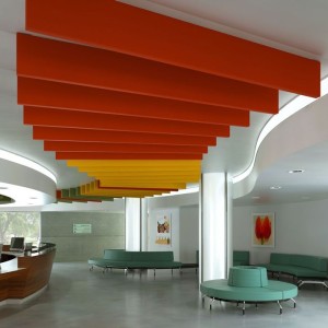 Уникальным решением для акустических потолочных и стеновых панелей является поверхность, которая специально была разработана инженерами K&R Design и имеет широкую цветовую гамму. Все эти факторы придают продукции K&R Design вид уникальной, самостоятельной архитектурной формы для различных дизайнерских решений. Материалы K&R Design максимально безопасны для здоровья человека и более того обеспечивают акустическое здоровье человека. Лицевая часть акустических плит равномерно отражает свет и не бликует, а также благоприятно влияет на глаза человека, снижая утомляемость в течении всего периода времени нахождения в помещении. При разработке ряда специальных изделий получилось добиться стопроцентного звукопоглощения в диапазоне частот от 500 до 4500Гц. Это очень важно для специализированных помещений, со специфическими акустическими требованиями, таких как кинотеатры, аудитории, классы, концертные залы, многофункциональные залы и конференцзалы.