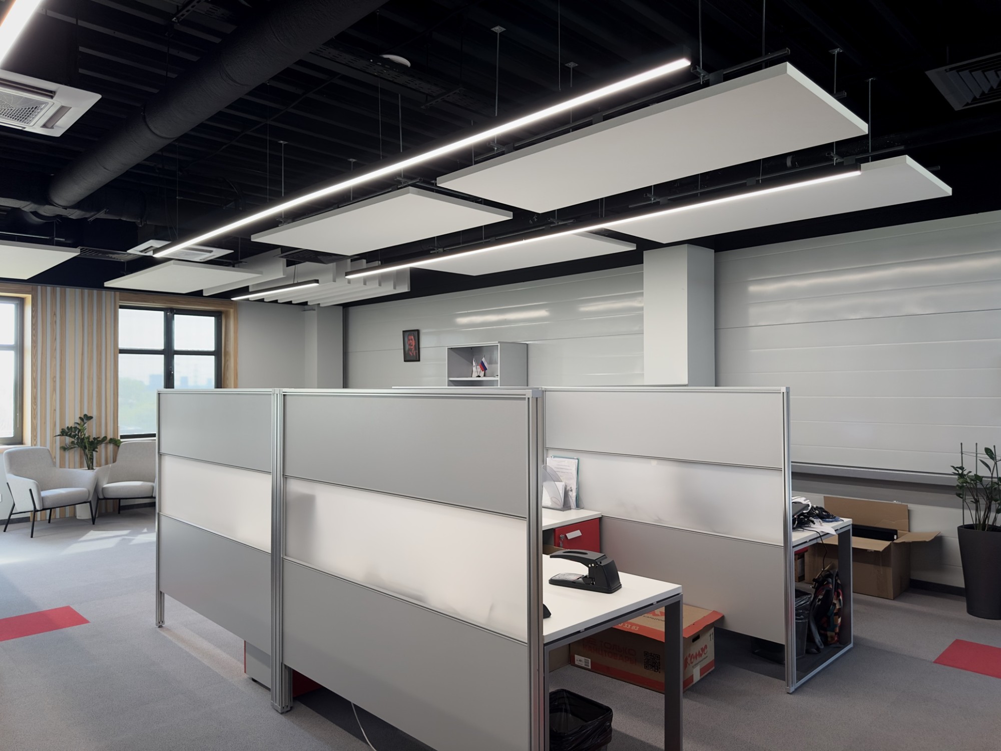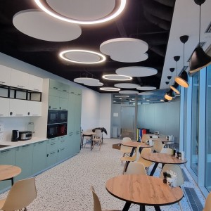 Акустические потолки K&R Design используются в офисах, ресторанах, кафе, образовательных и культурных учреждениях, создавая комфортную атмосферу и улучшая качество восприятия звука.