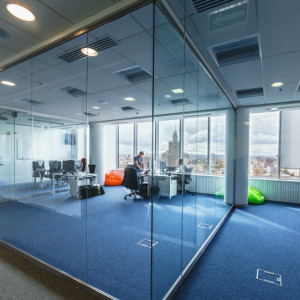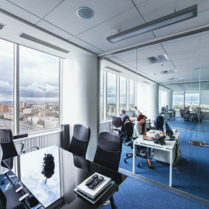 Офис в Sky Light. Мы сделали здесь полы и выполнили ремонт потолков. Получилось красиво.
