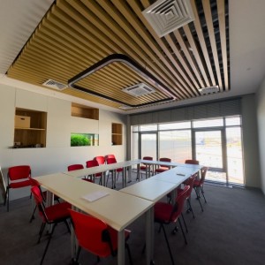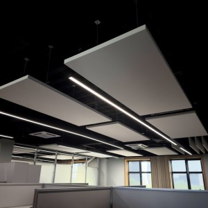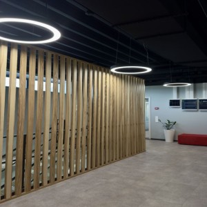 - Произвели и смонтировали акустические острова и баффлы — теперь в офисе не только красиво, но и тихо