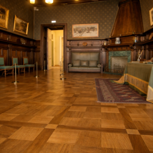Для оформления полов применялись благородные и долговечные материалы: керамогранит, натуральный мрамор и паркет. Каждый элемент подбирался с учётом нагрузок, геометрии помещений и эстетических требований реставрации.