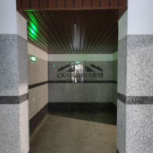 Производство и монтаж реечного потолка K&R Design цвета каштан со светильниками.