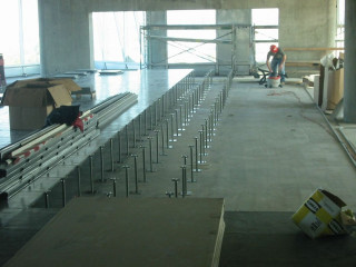 - Выполняется регулировка высоты стоек до получения нужной высоты и гладкости поверхности.