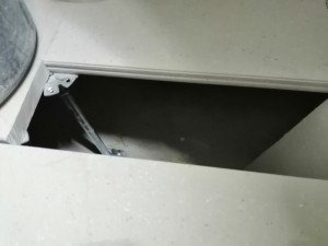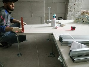 Монтаж неразъёмного фальшпола из сульфата кальция в кухонной зоне кафе.