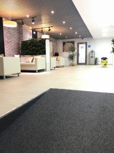 В проекте, как и во многих других офисных помещениях, применялся фальшпол из ДСП K&R Design толщиной 38 мм с алюминиевым листом сверху и снизу (порядка 600 кв.м).
